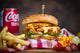 Grilled vegetarian patty, lettuce, tomatoes, pickles, onions, ketchup and mayo